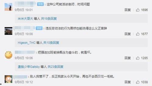 首先,得给你科普一下什么是996工作制。996工作制指的是一种工作模式,即每天早上9点上班,晚上9点下班,每周工作6天。这种工作模式在互联网行业尤为常见,因为高强度的工作节奏让很多上班族苦不堪言。